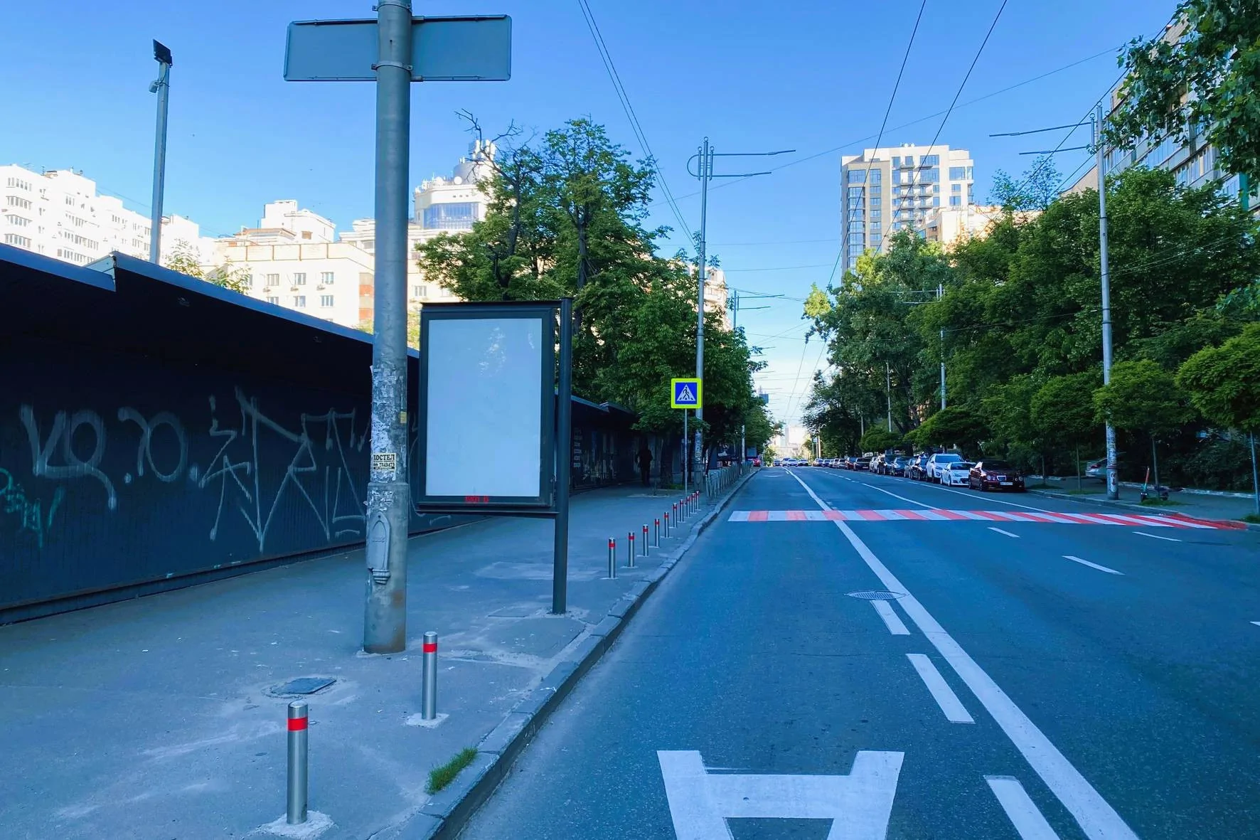 This citylight is located in the business heart of the Holosiivskyi district, on the busy Zhylianska Street, 47, immediately after a public transport stop. This ensures maximum visibility of the advertising message for disembarking passengers and drivers moving in traffic. The location is in an area of intense pedestrian and automotive traffic, as the large ADONIS Zhylianska Medical Center (only ≈10 meters away), the "Evropasazh" business center (≈450 m), and the EPAM Systems office (≈460 m) are nearby. Such a location makes it ideal for promoting medical services, financial institutions, IT companies, and catering establishments, reaching a solvent audience: office workers, clinic visitors, residents of nearby residential complexes like "Diplomat Hall," and public transport passengers who choose outdoor advertising in Kyiv. Thanks to bright illumination, your brand will be visible 24/7, effectively attracting attention both day and night. Ensure your business presence in the dynamic center of the capital – book this citylight today!