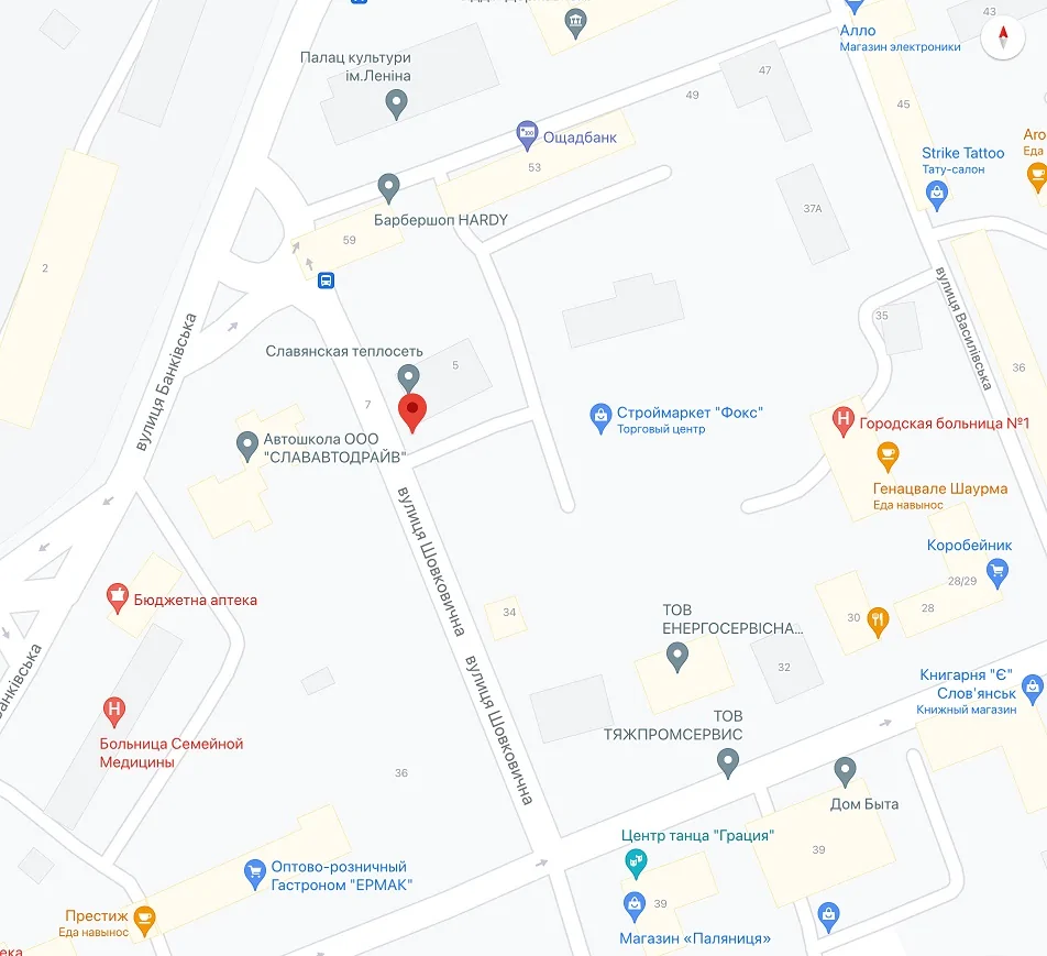 This Billboard (side B) is located in Sloviansk on the bustling Shovkovychna Street, right in the area of the "Fox" construction supermarket. This spot is a magnet for daily automotive and pedestrian traffic, heading for shopping, as well as visitors to the Sloviansk Department of the State Migration Service of Ukraine (≈205 m) and clients of Oschadbank (≈163 m). The proximity to the "Globus" shopping center (≈291 m), "Sloviansk" hotel (≈320 m), and numerous eateries, such as Maestro Barista (≈212 m), ensures constant attention from a wide audience. Your advertisement on this surface is ideal for promoting construction materials, furniture, home appliances, financial services, as well as for restaurants and coffee shops. It will effectively reach homeowners, developers, local entrepreneurs, shopping center visitors, office workers, city guests, and daily shoppers. This Billboard, thanks to its advantageous location, ensures high visibility and prolonged contact with potential customers. Book your placement today to make your offer noticeable in the heart of Sloviansk's business and commercial activity.