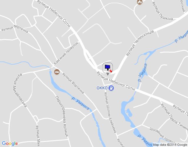 Billboard A in Uman, 6х3 (st.Radans'ka) st. Nebesnoi sotni, 47,povorot z st. Celuskinciv, razmezuvanna, PRAVIJ, storona A,