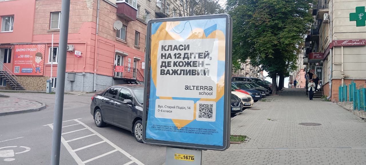 The Citylight on Shashkevycha Street, 1, located in the very heart of Ternopil's Central district, is an extremely effective spot for your advertising. This location is characterized by high pedestrian and vehicular traffic, as it is situated next to the popular "Stara Pitseriia" (Old Pizzeria) and in close proximity to major commercial objects such as the "Ornava" shopping center and "Silpo" supermarket. The constant flow of visitors to shops, eateries, as well as to the "Oxford Medical Ternopil on Ruska Medical Center" (≈640 m), guarantees maximum contact of your message with the target audience. This is an ideal solution for promoting retail stores, catering establishments, medical services, or banks, as it allows you to reach residents of the area, shopping center customers, business clients, and casual passers-by. The bright and clear image on this Citylight will ensure excellent visibility of your offer. Don't hesitate to let Citylights in this bustling part of the city start working for your business: book this space today while it is available in Ternopil!