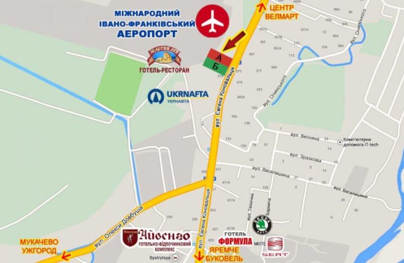 This Billboard is located in Ivano-Frankivsk on Konovaltsia Street, near the airport – a strategic location with intense vehicular traffic. The structure is perfectly visible to drivers and passengers heading to or from the airport, as well as transit traffic. Just ≈60 meters away is the "ATB" supermarket, and ≈130 meters away is the "Zoloty Lev" restaurant, creating a constant pedestrian flow. Nearby are also UKRNAFTA and Total gas stations (≈400-450 m) and numerous car service centers, attracting additional audience. This placement allows reaching a wide range of solvent clients: drivers, airline passengers, local residents of the Opryshivtsi microdistrict, and visitors to retail outlets. This advertising space is ideal for promoting car dealerships, travel agencies, hotels, catering establishments, and logistics services. Your advertisement on this Billboard is guaranteed to attract attention, ensuring maximum visibility for your brand in Ivano-Frankivsk. Book your placement today to ensure the success of your advertising campaign.