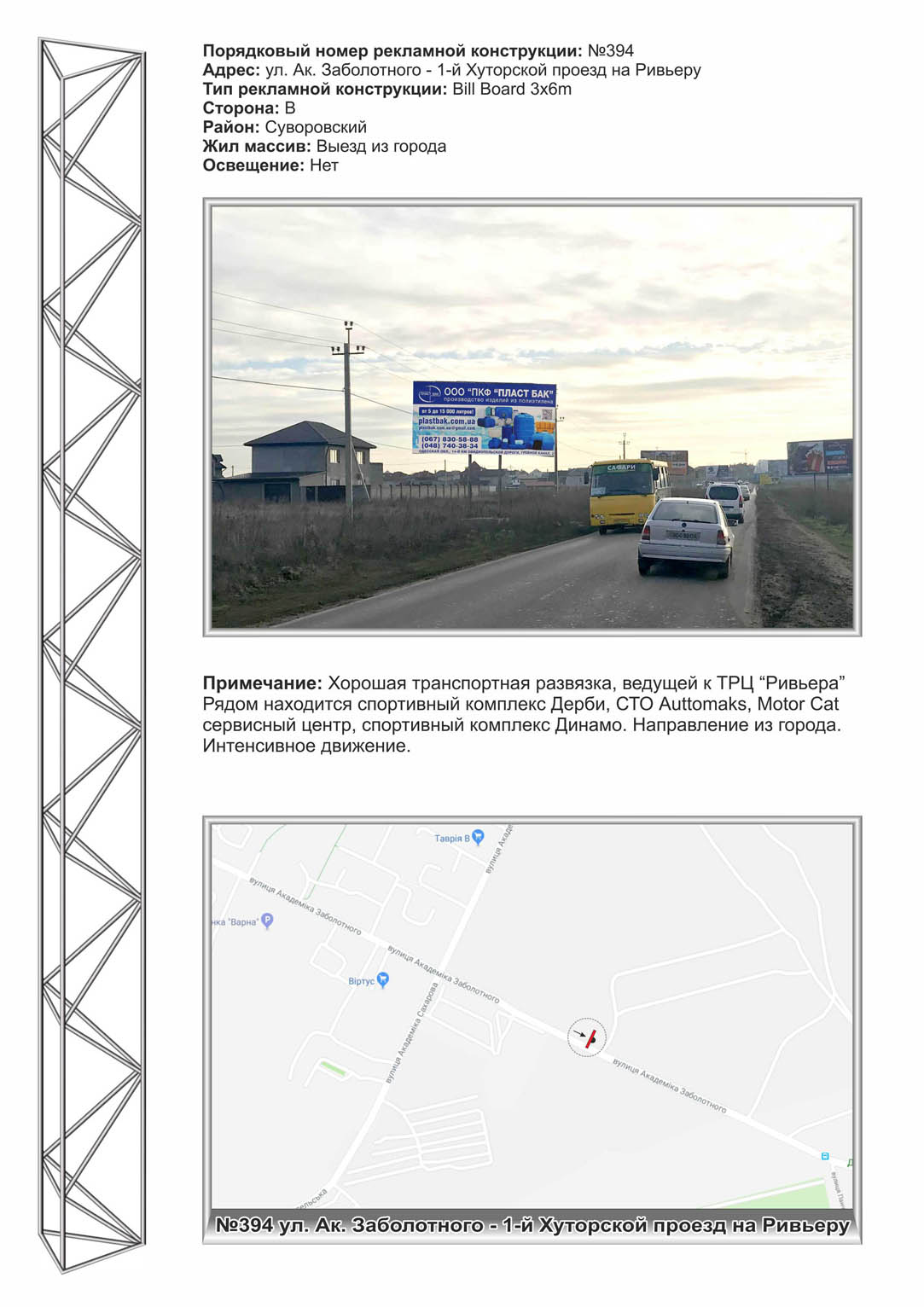 Billboard B in Odessa, 3х6 No394 st. Zabolotnogo - 1-j Hutorskoj proezd na Riv'eru