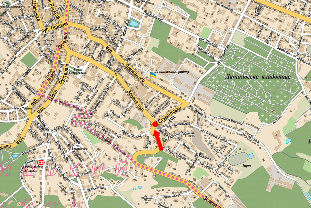 Lviv, Zelena St., 72 / Students'ka St., V Centr