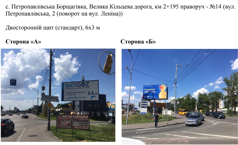 Billboard B in Petropavlivska Borshchagivka, 6х3 м с. Петропавлівська Борщагівка, Велика Кільцева дорога, (вул. Петропавлівська, 2 (поворот на вул. Соборну) км 2+195 праворуч - №14