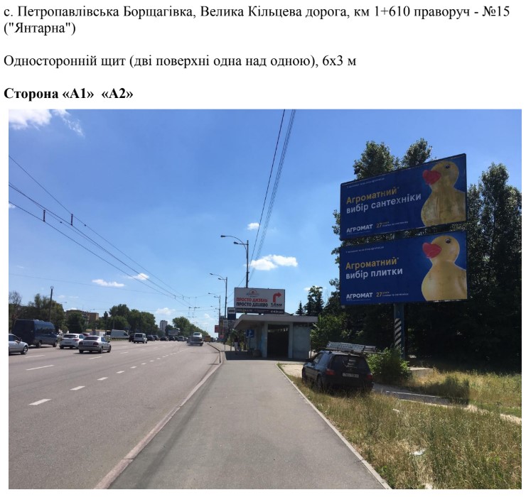 Billboard A in Petropavlivska Borshchagivka, 6х3 м с. Петропавлівська Борщагівка, Велика Кільцева дорога, км 1+610 праворуч - №15 ("Янтарна")