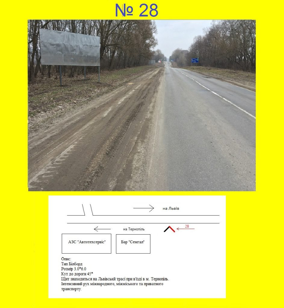 Billboard A in Ternopil highway В'їзд в Тернопіль з Львова , бар Семегал, 600 м