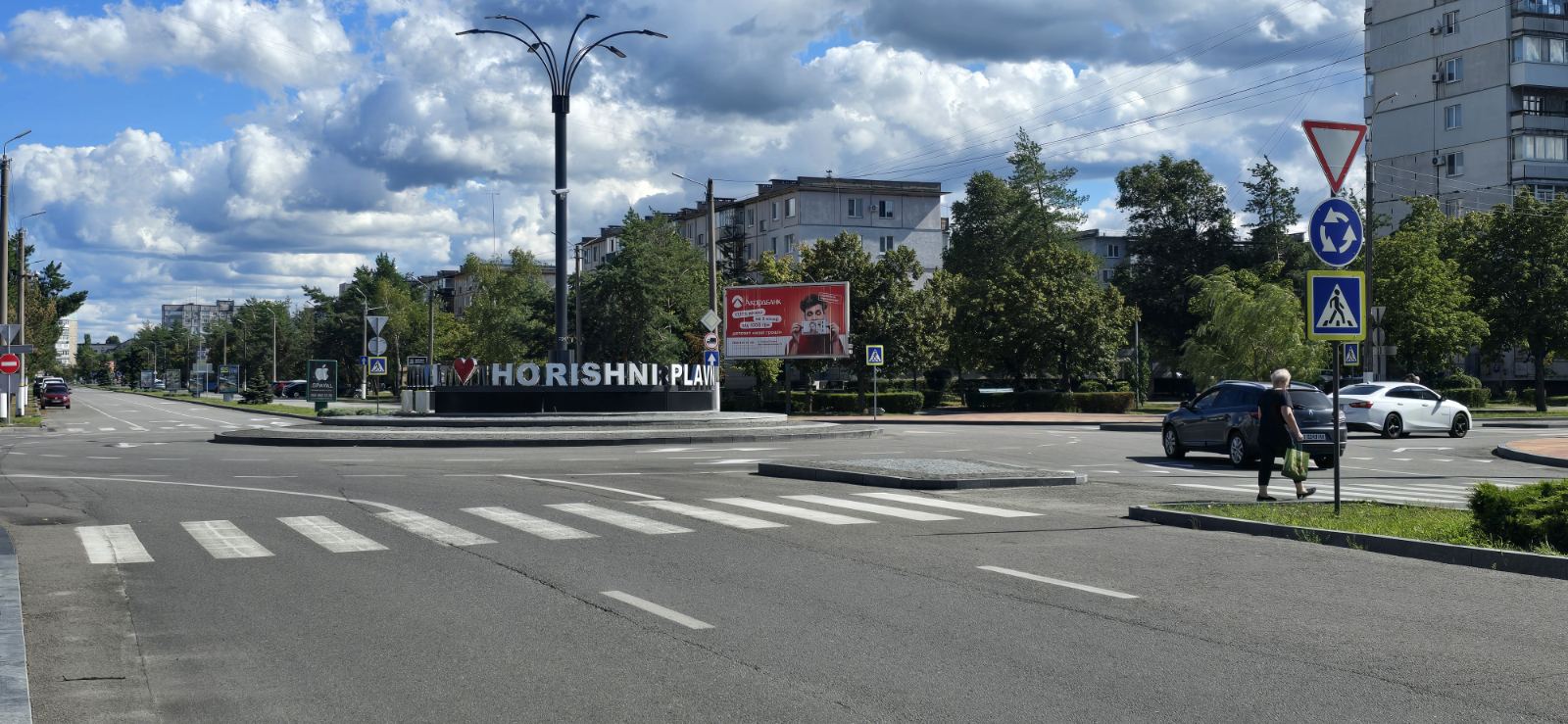 Billboard A in Horishni Plavni (Komsomolsk) центр. перехр.просп. Героїв Дніпра та вул. Миру, призматрон, освітлення