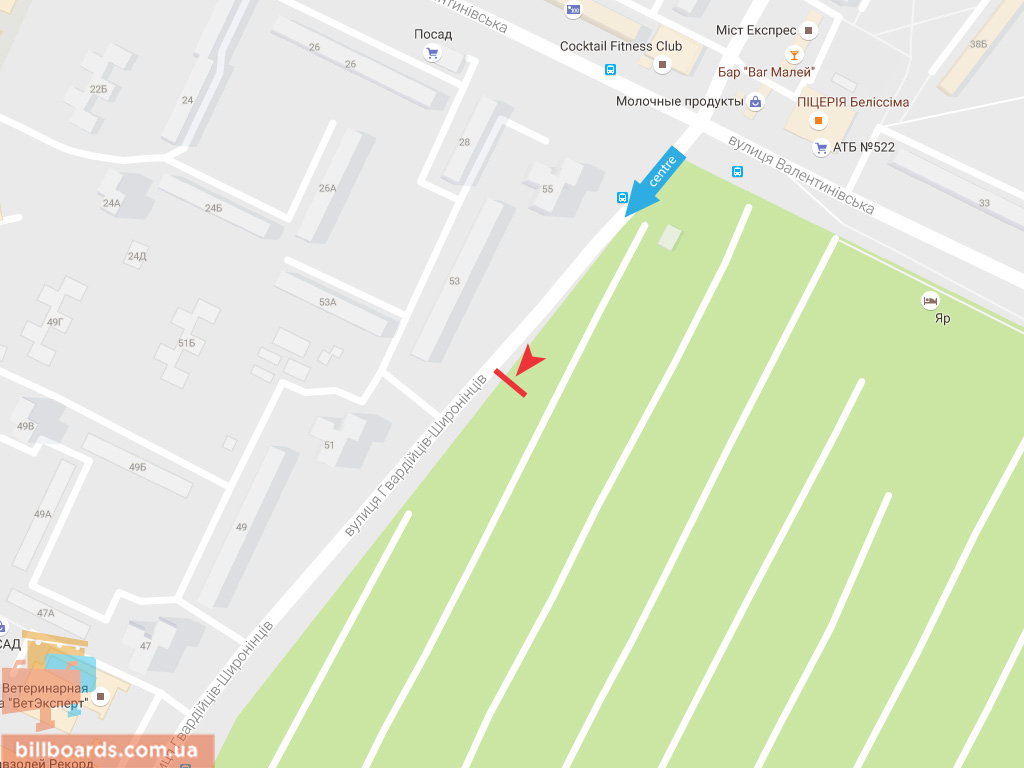 Billboard B in Zaporizhzhya Gvardejcev Sironincev st. - Valentinovskaa st., v centr