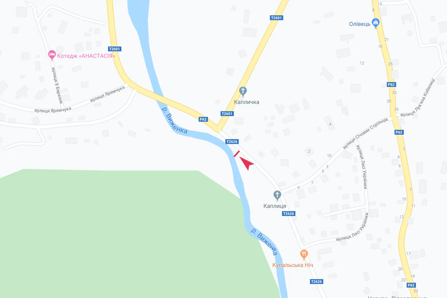 Vyzhnitsa , viizd na perehresti poruc z Kaplickou